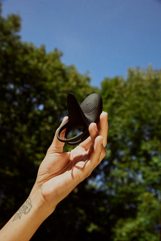 Utiliser la télécommande pour sélectionner un mode de vibration et/ou donner le contrôle à un·e partenaire. -