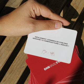 Piocher quelques cartes du jeu Discultons pour échanger en toute sincérité et renforcer votre connexion.