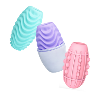 Chaque gaine a une texture interne unique pour varier les plaisirs. Une est plus serrée, une autre plus nervurée, et la dernière combine plusieurs reliefs. À toi d’explorer et de découvrir celle qui te fait vibrer le plus !