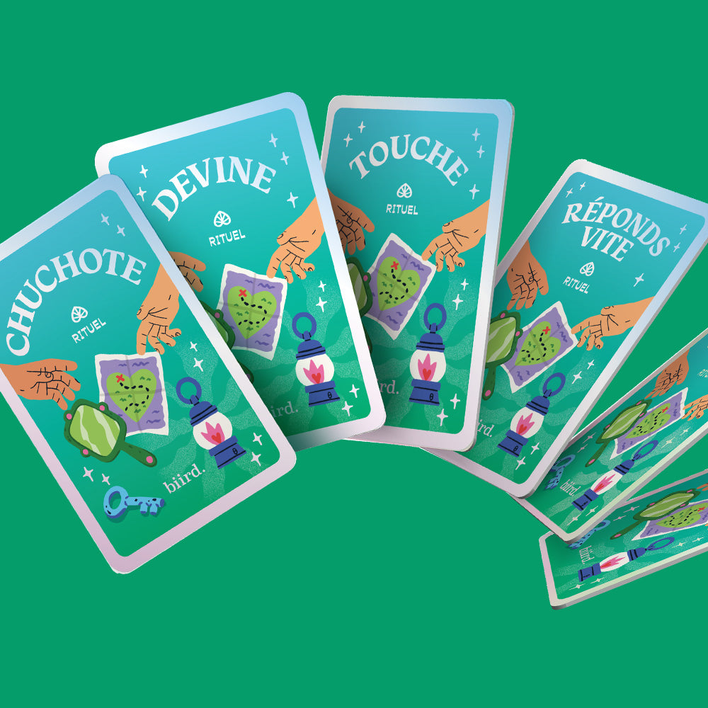 Laissez les Cartes Rituel pimenter vos échanges : chuchotez, touchez, écrivez, ou laissez-vous deviner.