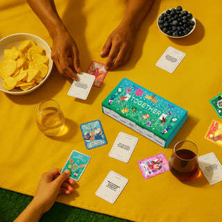 Avec ses cartes au fini mat, son dé en verre et ses cartes Rituel, Together offre une expérience presque sensuelle — celle du geste, du regard, du toucher. Chaque partie devient un petit rituel à deux : une façon de nourrir la relation, de l’entretenir, et surtout, d’en savourer chaque instant.