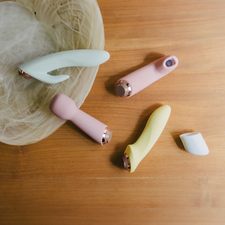 Un ensemble de 4 vibrateurs interchangeables comprenant un vibrateur lapin, un vibrateur à air pulsé, un vibromasseur et un vibrateur anal de Satisfyer pour varier les plaisirs.