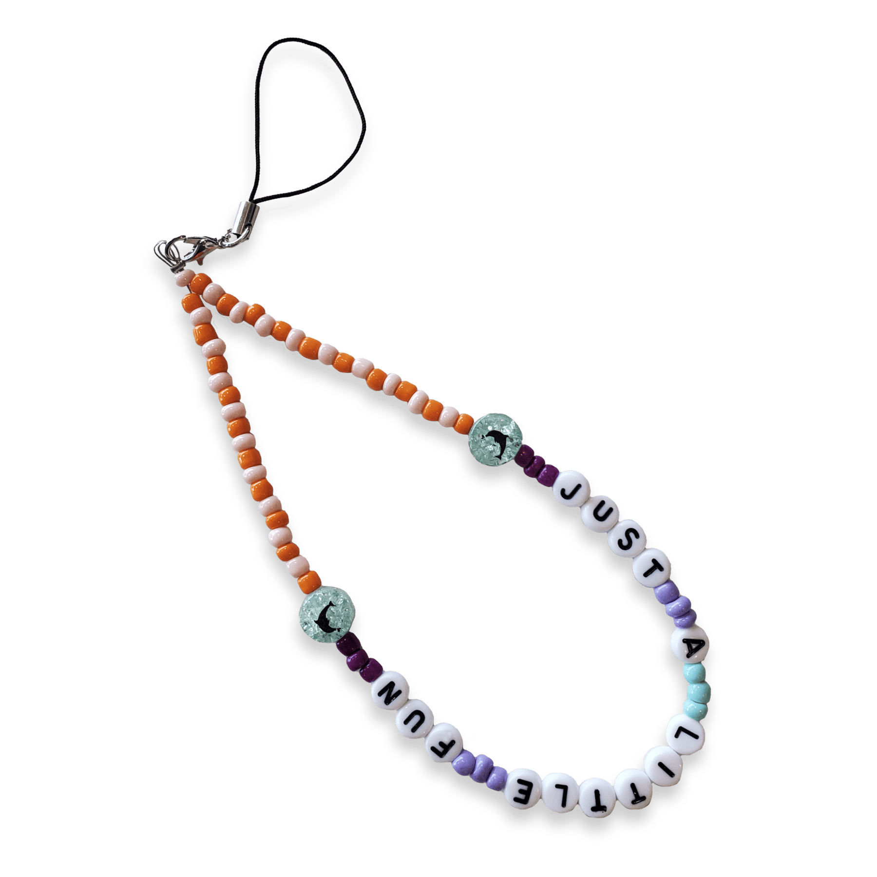 A colorful beaded charm by JUST A LITTLE FUN to personalize your phone with flair and mischief.