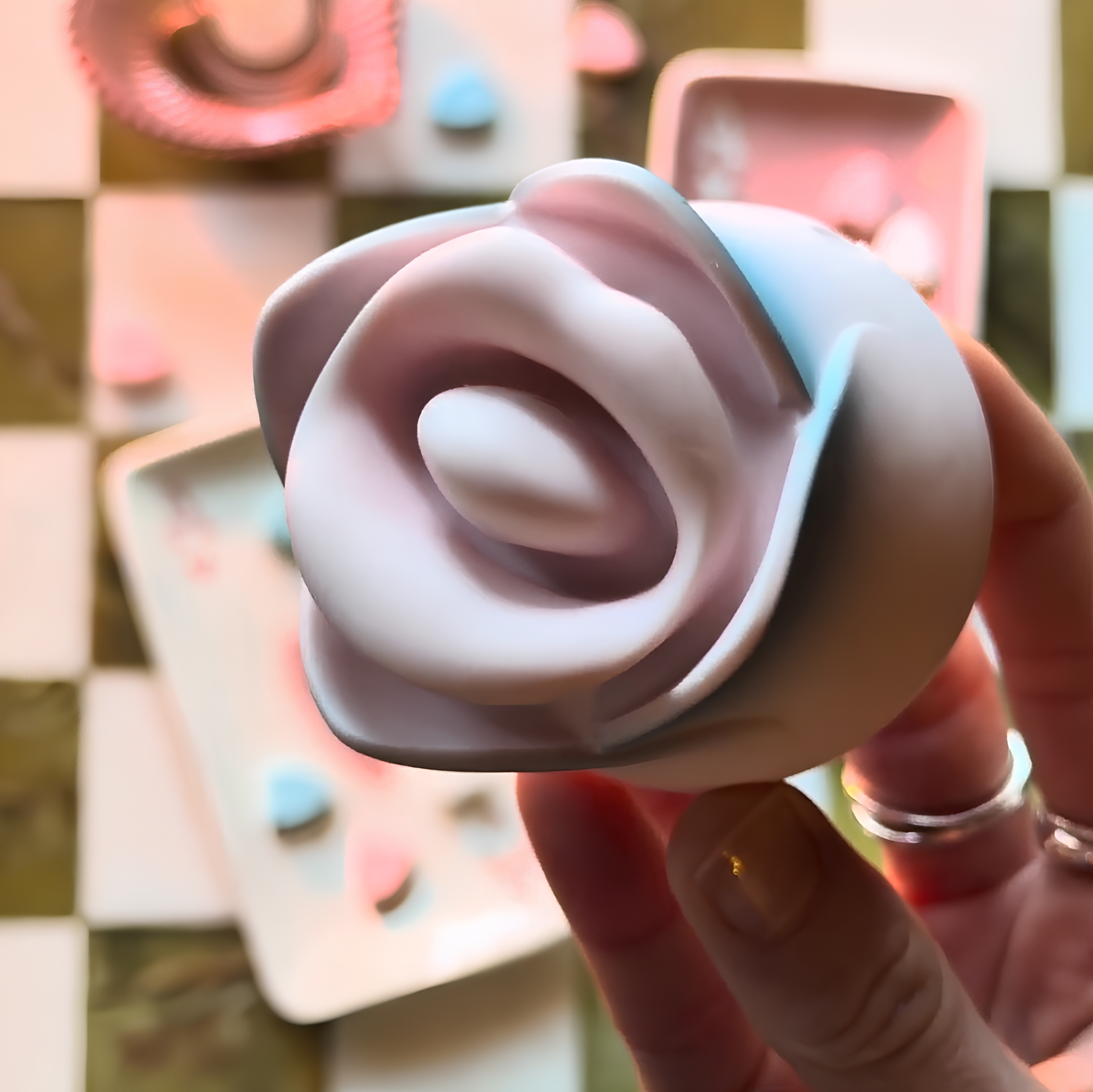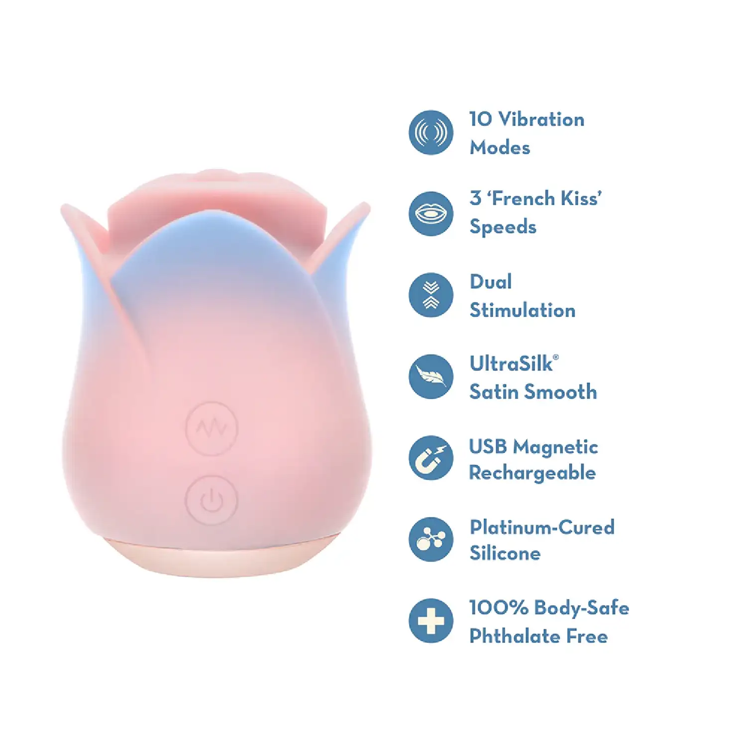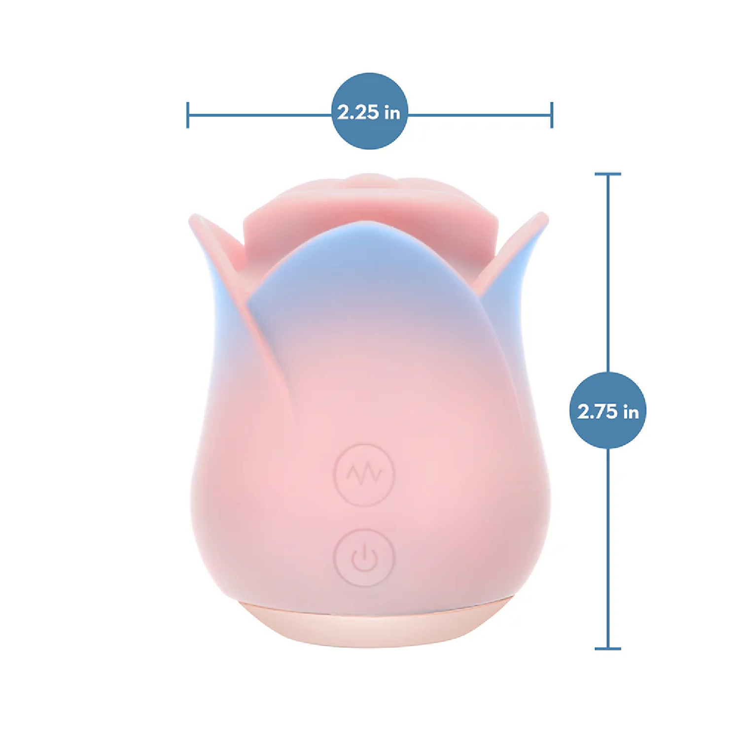 A rose-shaped clitoral stimulator by Blush that combines vibration with lifelike tongue movement.